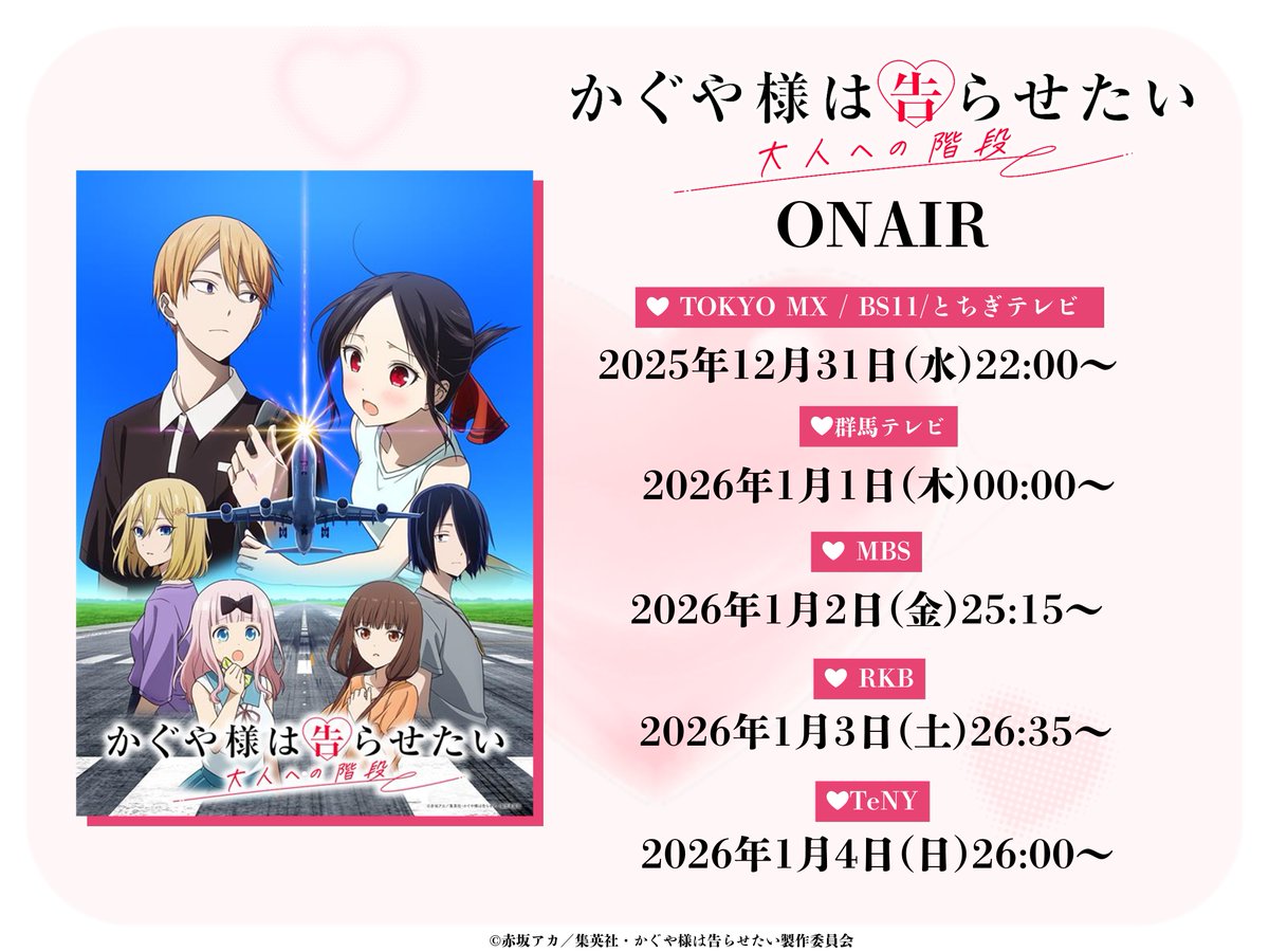 — アニメ「かぐや様は告らせたい」公式 (@anime_kaguya) December 9, 2025