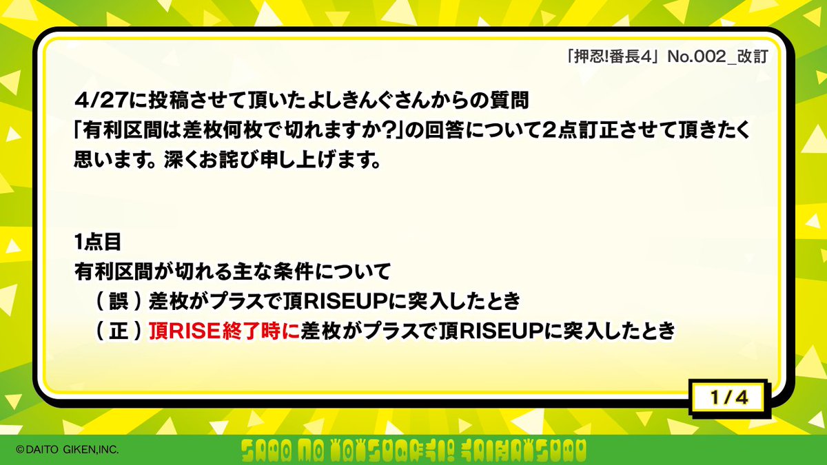 『よしきんぐ』さんから頂いた#番長4 の質問の回答に誤りがあったボ