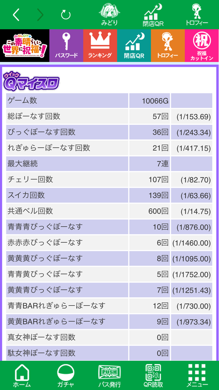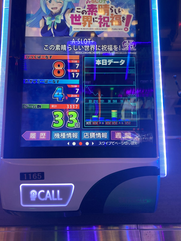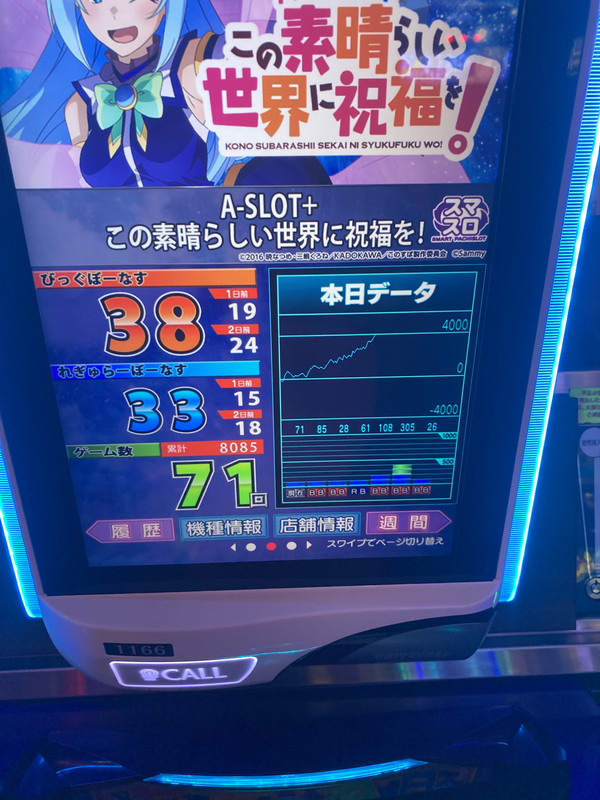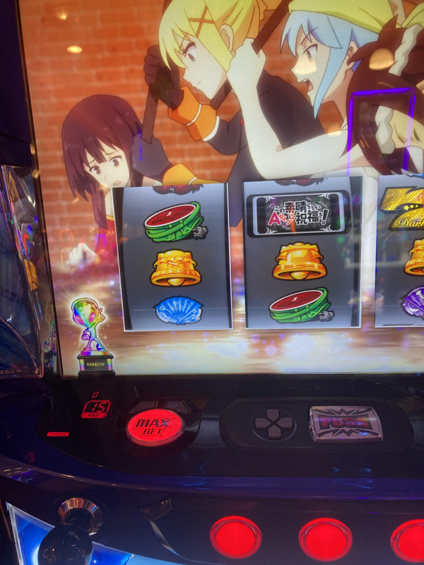 店内アンケートとかいうイベで1位このすばでメダル機3台、スマスロ2台しかなくて、今まで1位の機種はほぼ全台系でこの台だけやたら弱いってのもないはずだと思って