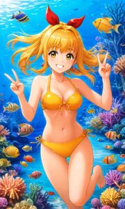 最初に腰に手を当てて2人ずつマリンちゃんは全てAI 生成っぽい