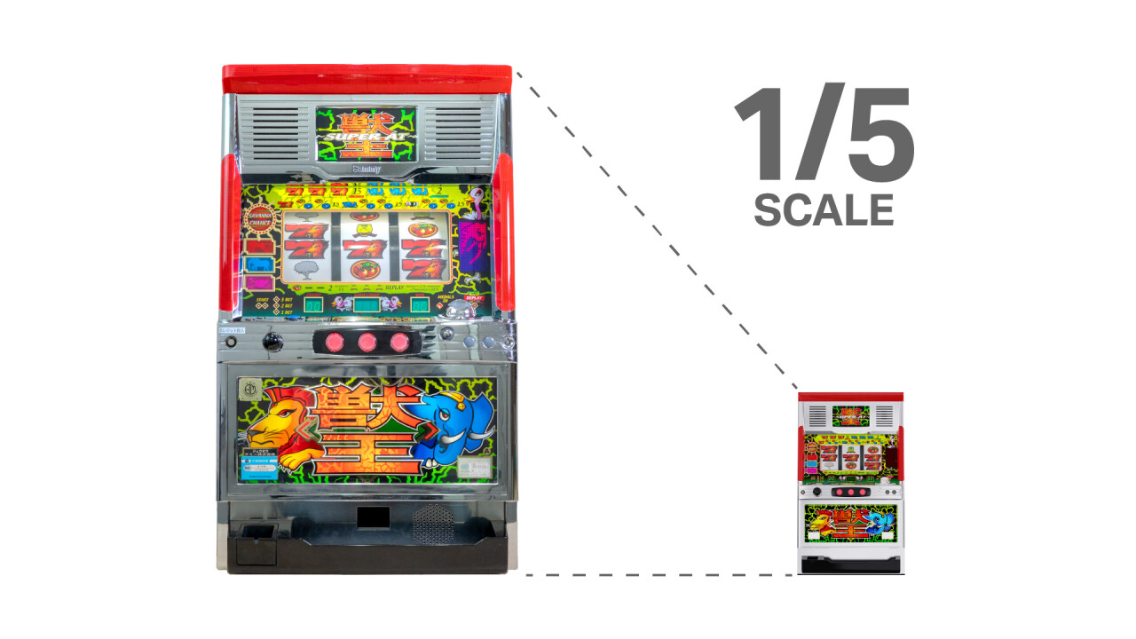 本クラウドファンディングでは、サミーが2000年に発売したパチスロ機「獣王」の復刻モデルで、実機「獣王」の約5分の1サイズ(体積比)で再現したもの。